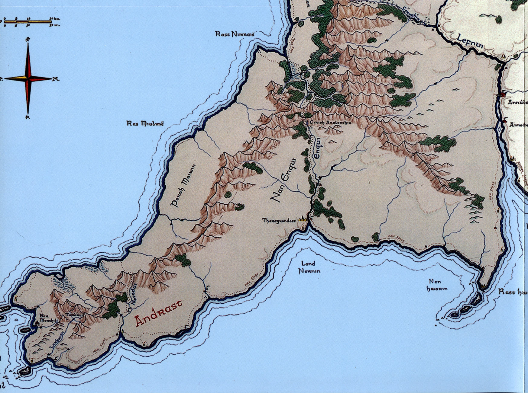 Localización de Andrast en Gondor. En rojo sus fronteras tentativas con Druwaith.