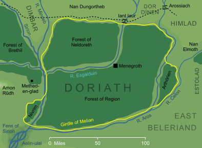 El reino de Doriath se caracterizaba por su territorio poblado enteramente por densos bosques de hayas y robles. El territorio del reino comprendía los bosques de Brethil, Region y Neldoreth, aunque la Cintura de Melian sólo protegía los dos últimos, de modo que Brethil fue concedido por Thingol a los Edain de la Casa de Haleth con la condición de que vigilaran el Brithiach y los vados del Sirion.