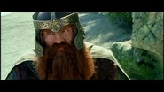 Finalmente los tres se reencontraron con Gandalf en Fangorn, y se involucró más en la guerra. Gimli tuvo un papel fundamental en la derrota de las fuerzas de Isengard en el Abismo de Helm , donde fue separado de Aragorn y Legolas y conducido a las cuevas de Aglarond de las que más tarde se convertiría en Señor. Él logró sobrevivir junto a Éomer cuando las fuerzas de Isengard fueron expulsadas del Abismo de Helm. Su habilidad con el hacha le llevó a ganar, por un orco, el concurso amistoso entre él y Legolas sobre quién podría matar a más orcos. Gimli acompañó entonces a Aragorn y Legolas a través de la Dimholt en un intento de reclutar el ejército de los muertos. Tras la liberación de los soldados de Gondor y la captura de los barcos de los Corsarios, navegaron a Minas Tirith. Después de conseguir la victoria en la Batalla de los Campos del Pelennor , Gimli acompaña a Aragorn, Legolas y el resto de los ejércitos de Gondor y Rohan a la puerta negra.