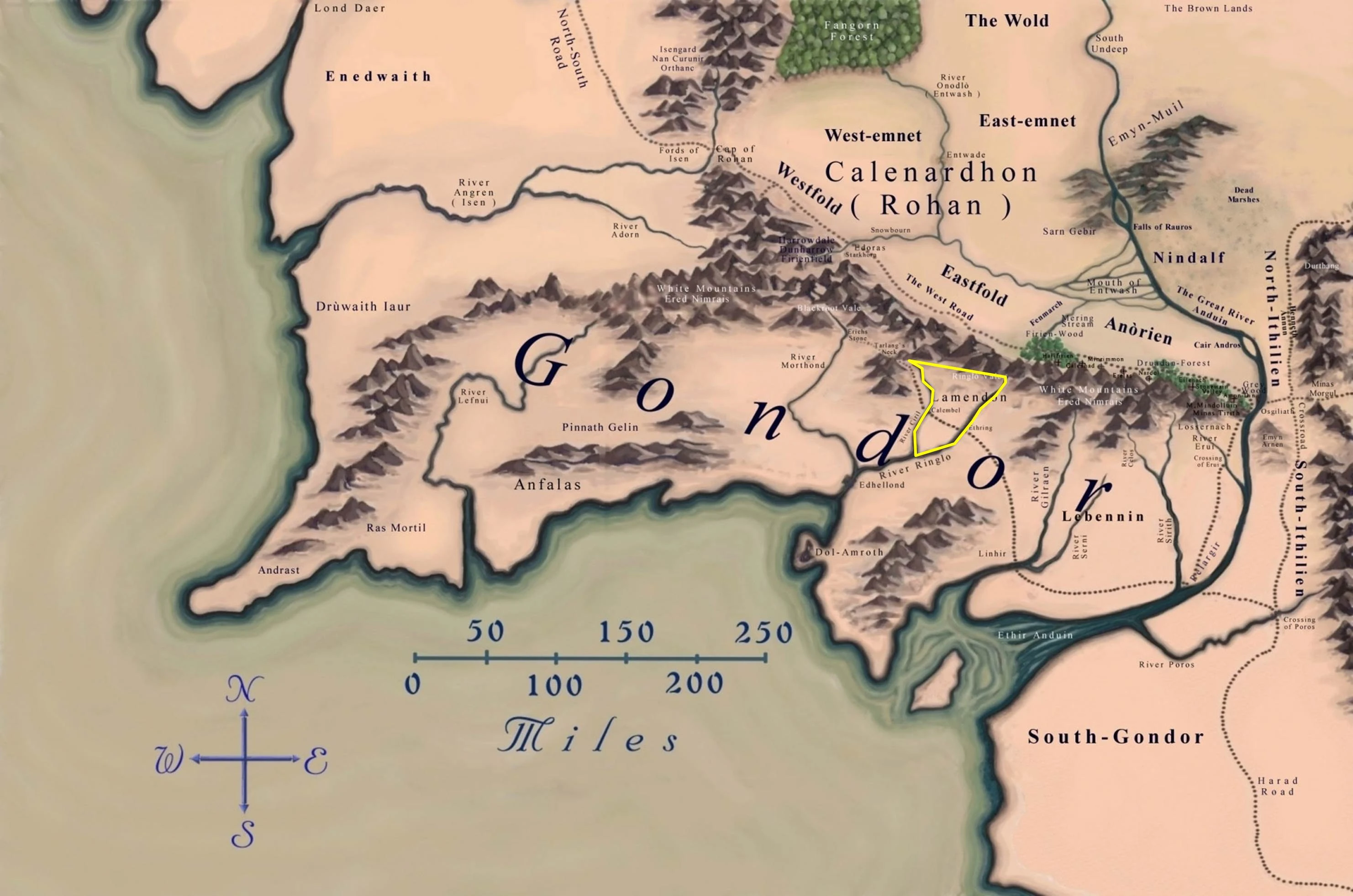 Localización de Lamedon en Gondor