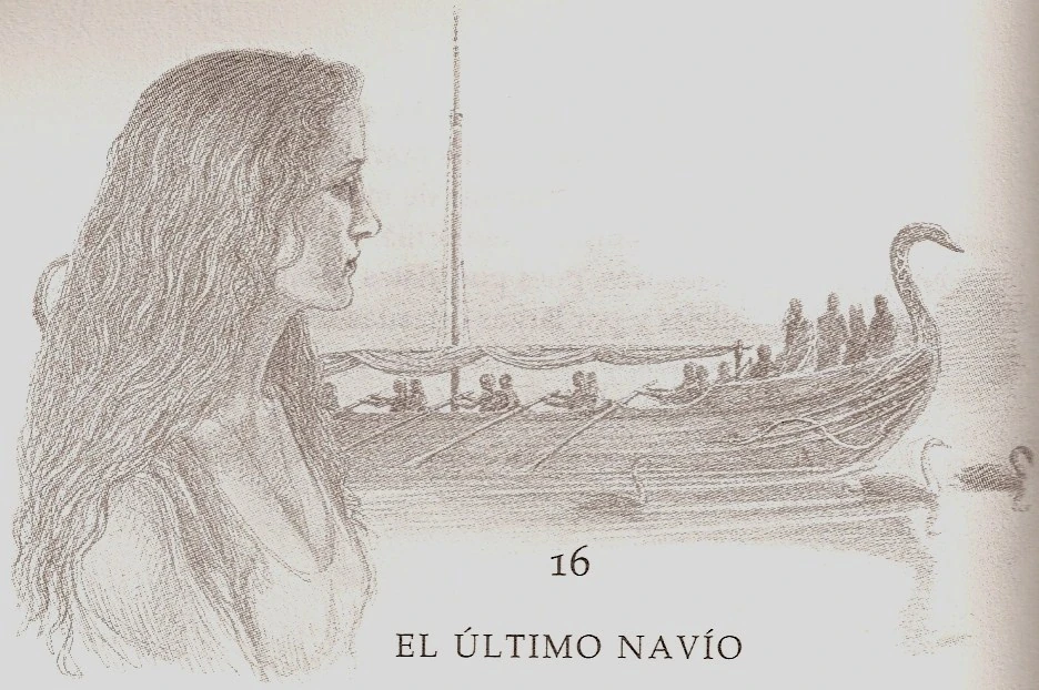 Trata sobre una mujer llamada Fíriel que, desde las costas, divisa cómo el último navío de los elfos se dirige hacia el mar. Ella les pregunta hacia donde van y ellos responden que van hacia el hogar de los elfos más allá de las tierras mortales, y la invitan a ir con ellos pues queda sitio en su barco. Pero cuando ella intenta acercarse sus pies se hunden en la arena y la nave se aleja. Desde el barco los elfos la escuchan lamentarse: “No puedo partir. Yo soy hija de la Tierra”. Finalmente Fíriel se queda en las tierras mortales y vuelve a su trabajo, a paso cansino.